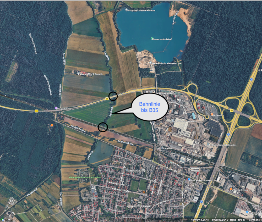 (Fliegenfischerstrecke von 1. Haus Bruchsal aus Richtung Heidelsheim bis Uferweg )